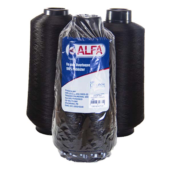 - FIO OVERLOCK, 100% POLIÉSTER TEXTURIZADO, MARCA ALFA, CONE COM 500 GRAMAS, PRETO.