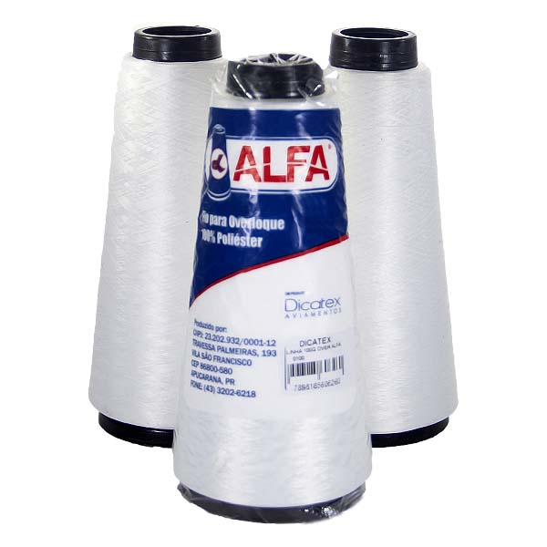 - FIO OVERLOCK BRANCA, 100% POLIÉSTER TEXTURIZADO, ALFA, CONE COM 100 GRAMAS